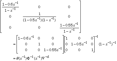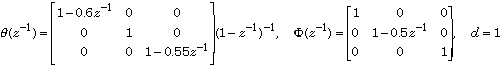 theta = diag([1-0.6*z^-1 1 1-0.55*z^-1]);