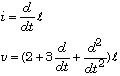 Inspection of the matrix D shows that the only available option is to take the current i as the output and, hence, the voltage as the input. Substitution of the resulting output